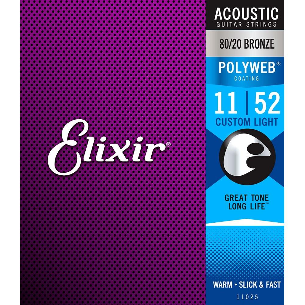 Elixir 11025 Polyweb 80/20 Bronze Acoustic Guitar Strings Custom Light 11-52 Gauge