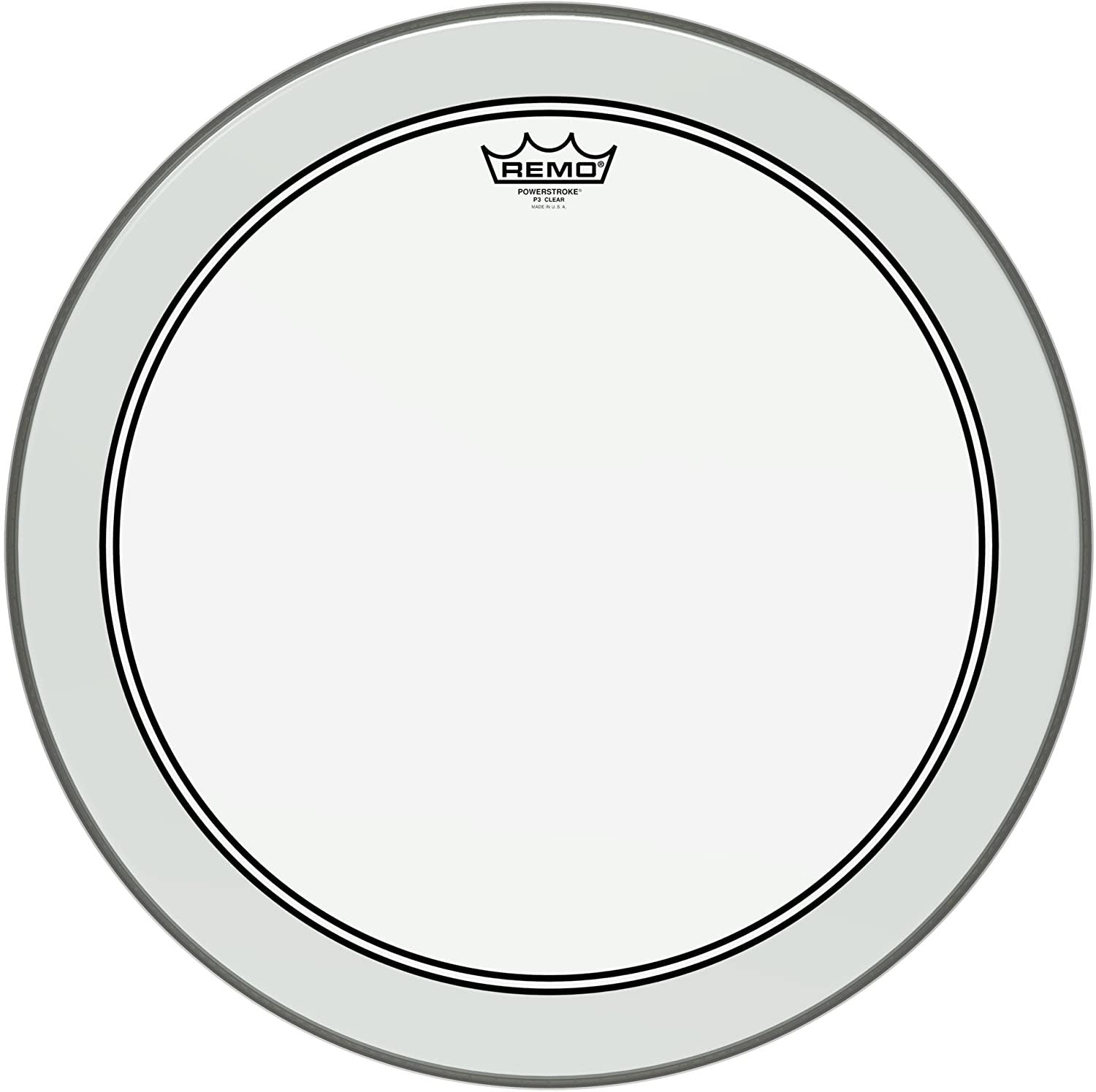 The Remo Powerstroke 3 Bass drumhead provides a contoured tone and punchy response that works great for rock, funk, and metal. One of the world's most popular bass drumheads, the Remo Powerstroke 3 adds focus and low end to your kick drum tone without throwing your kit out of balance. A thin outer-edge underlay gently damps high overtones to keep your bass tone pure. And the included Remo Falam Slam adhesive patch gives you a tick-ier attack and dramatically improved life with wood and plastic beaters.