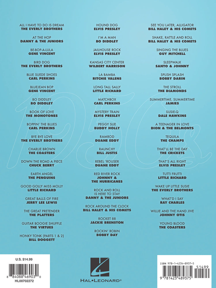Over 50 golden oldies arranged for easy guitar, including: All I Have to Do Is Dream • At the Hop • Be-Bop-A-Lula • Blue Suede Shoes • Book of Love • Bye Bye Love • Earth Angel • Hound Dog • Jailhouse Rock • La Bamba • Long Tall Sally • Peggy Sue • Rebel 'Rouser • Rocket 88 • Rockin' Robin • Shake, Rattle and Roll • Summertime, Summertime • Tequila • That'll Be the Day • What'd I Say • and more.