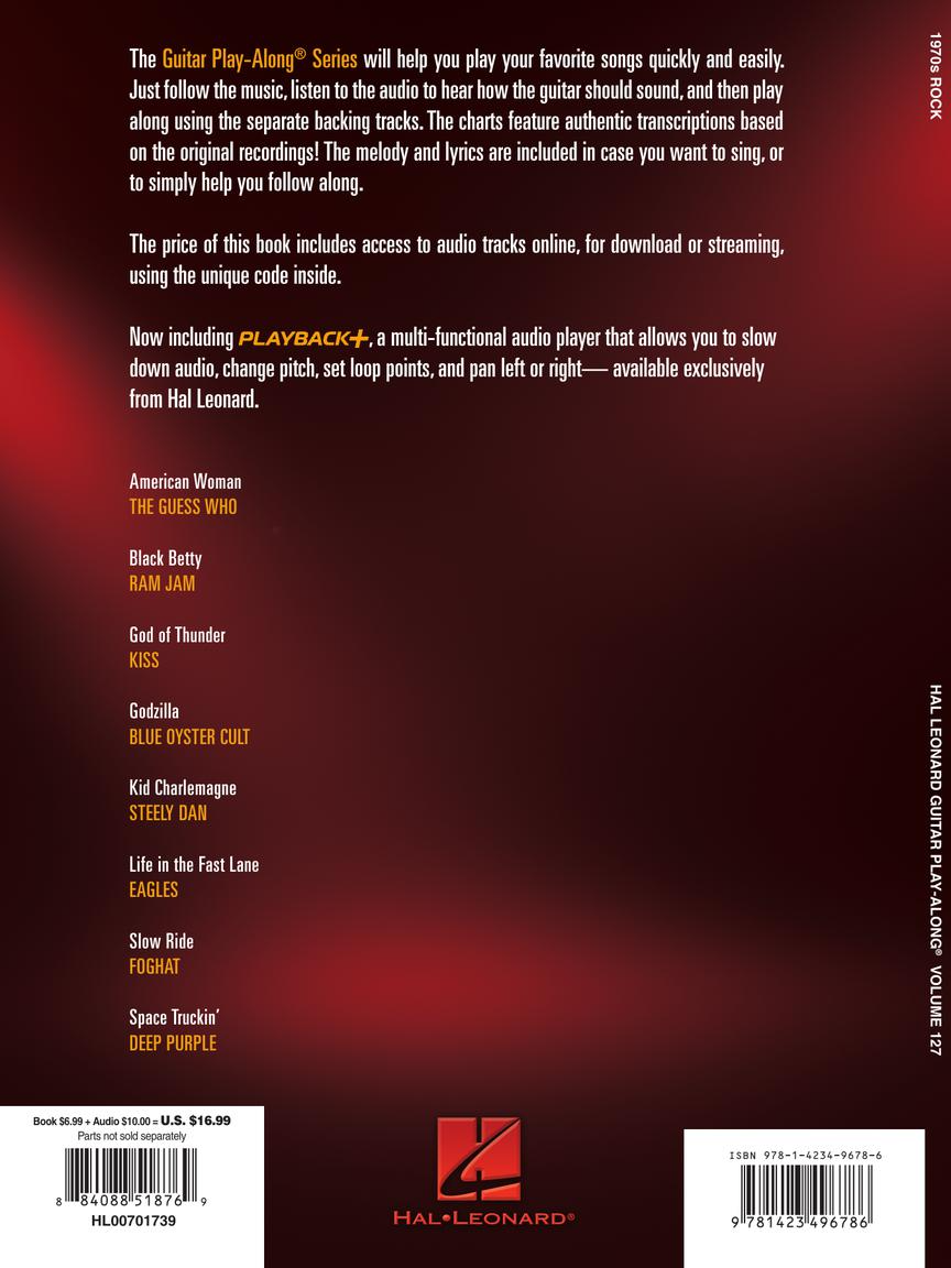 The Guitar Play-Along series will help you play your favorite songs quickly and easily! Just follow the tab, listen to the audio to hear how the guitar should sound, and then play along using the separate backing tracks. The melody and lyrics are also included in the book in case you want to sing, or to simply help you follow along. 8 songs: American Woman • Black Betty • God of Thunder • Godzilla • Kid Charlemagne • Life in the Fast Lane • Slow Ride • Space Truckin'.
