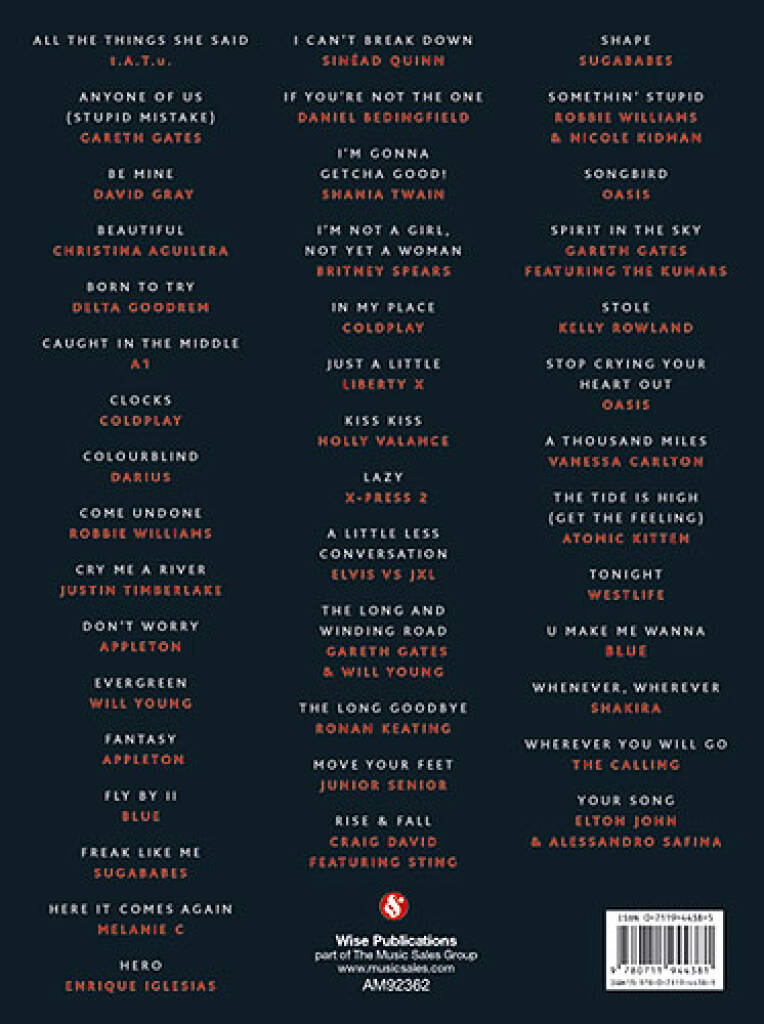 This incredible compilation includes more than 40 phenomenal pop favourites such as Christina Aguilera’s Beautiful and Justin Timberlake’s Cry Me A River. All of the smash hit songs featured are arranged for Piano, Voice and Guitar with chord boxes.