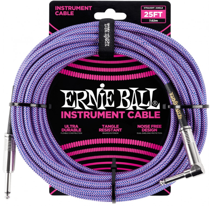 Ernie Ball Braided Straight to Angle Instrument Cable 25 foot in Purple Blue