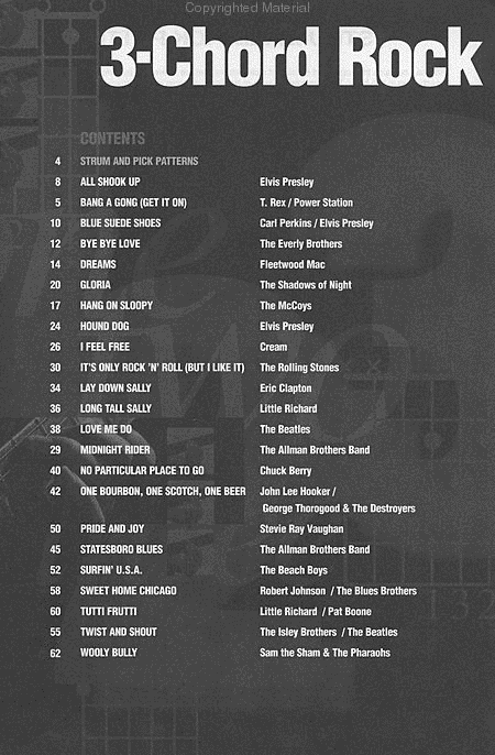 23 terrific hits that even beginners can rock out on! Includes: All Shook Up * Bang a Gong (Get It On) * Blue Suede Shoes * Dreams * Gloria * Hang On Sloopy * Hound Dog * I Feel Free * It's Only Rock 'N' Roll (But I Like It) * Lay Down Sally * Love Me Do * Pride and Joy * Surfin' U.S.A. * Tutti Frutti * Twist and Shout * Wooly Bully * and more.