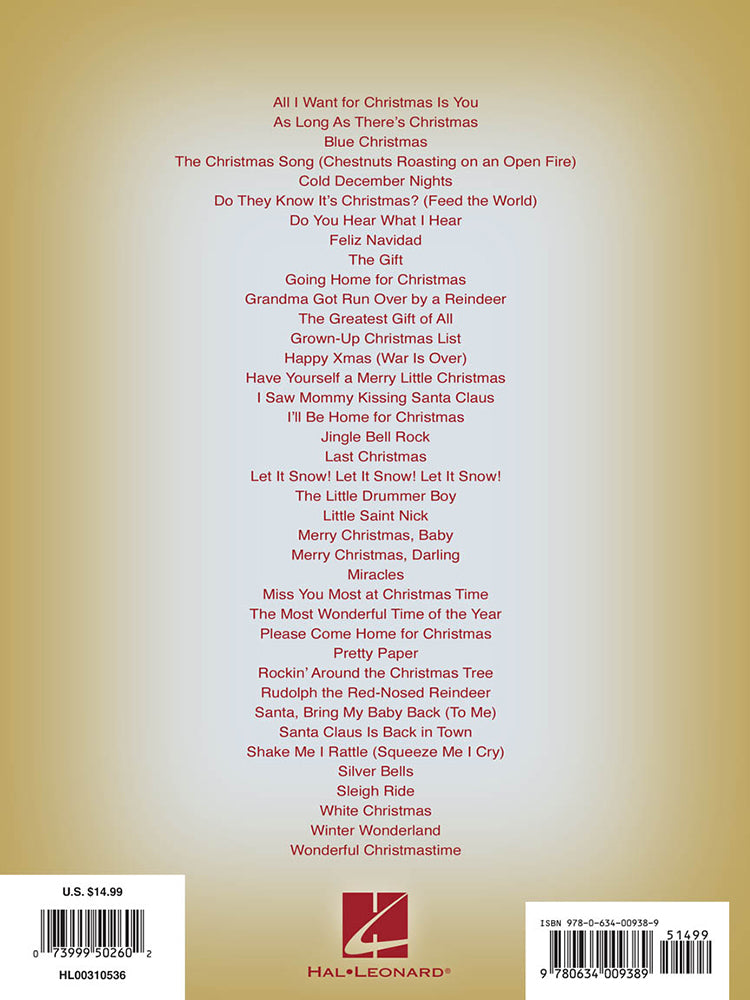 38 classic and contemporary songs of the season: Christmas Is All in the Heart • The Christmas Song • Cold December Nights • Do T hey Know It's Christmas? • Do You Hear What I Hear • Feliz Navidad • The Gift • I'll Be Home for Christmas • Jingle-Bell Rock • Miracles • The Most Wonderful Time of the Year •Silver Bells • more.