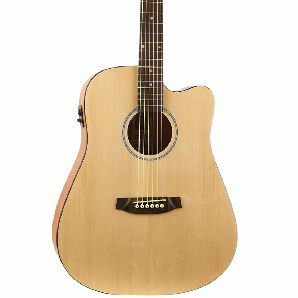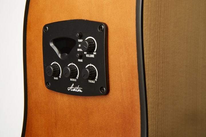 The Ashton D20SCEQ is the most affordable solid top acoustic guitar available, giving you a superior tone for a fraction of the cost. Packed full of features, including a solid Spruce top, cutaway, Smartwood fingerboard and EQ system with built in tuner. The Most Affordable Solid Top Acoustic Guitar Available, Giving You A Superior Tone For A Fraction Of The Cost.Product Features: