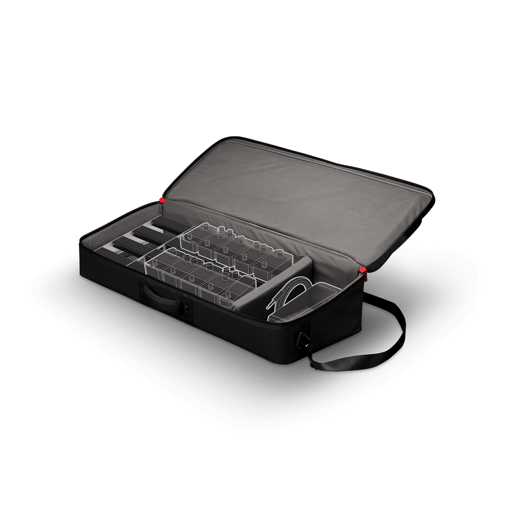 The Backline Pedalboard Transporter case adapts perfectly to our XPND Pedalboards and will fit most other similarly sized pedalboards. No matter the length or how often you modify your board, the case’s customizable partitions easily adjust to create a uniquely snug and secure fit. In addition to its sleek design and rugged construction, the Backline Pedalboard Transporter also features heavy-duty zippers and a reinforced shoulder strap