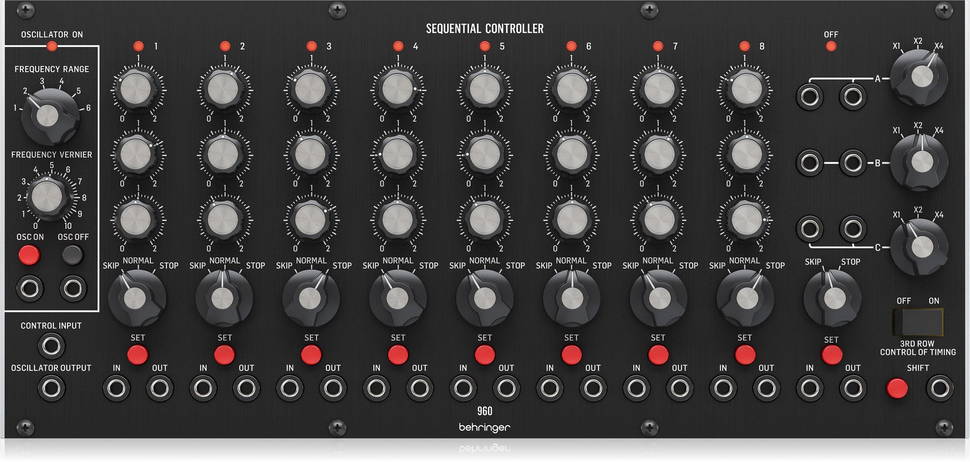 Enter the Behringer 960 SEQUENCER CONTROLLER. An authentic reproduction of the circuitry from the Modular 55 series used by the worlds most famous pop, rock and jazz musicians. Now you can build your very own, unique synthesizer that can fit in a standard Eurorack case for a very affordable price. Mix and match with specific modules to customize your synth and complement the genre of music you play or go all out and have a room filled from floor to ceiling with modules thatll fulfill any synth geeks wildest dreams.