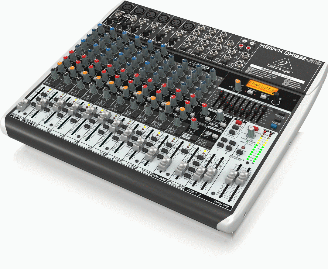 The feature-packed XENYX QX1832USB mixer allows you to effortlessly achieve premium-quality sound thanks to its 6 onboard studio-grade XENYX Mic Preamps and ultra-musical “British” channel EQs – with a semi-parametric mid band for warm and musical sound. And our easy-to-use “one-knob” compressors provide total dynamic control for the ultimate in punch and clarity, while respecting all the power and emotion you pack into every note.