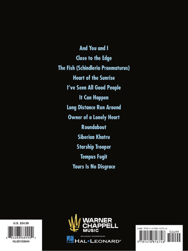 Note-for-note transciptions of Chris Squire's superb bass lines from 13 Yes classics: And You and I • Close to the Edge • The Fish (Schindleria Praematurus) • Heart of the Sunrise • I've Seen All Good People • It Can Happen • Long Distance Run Around • Owner of a Lonely Heart • Roundabout • Siberian Khatru • Starship Trooper • Tempus Fugit • Yours Is No Disgrace. Includes bass tab.