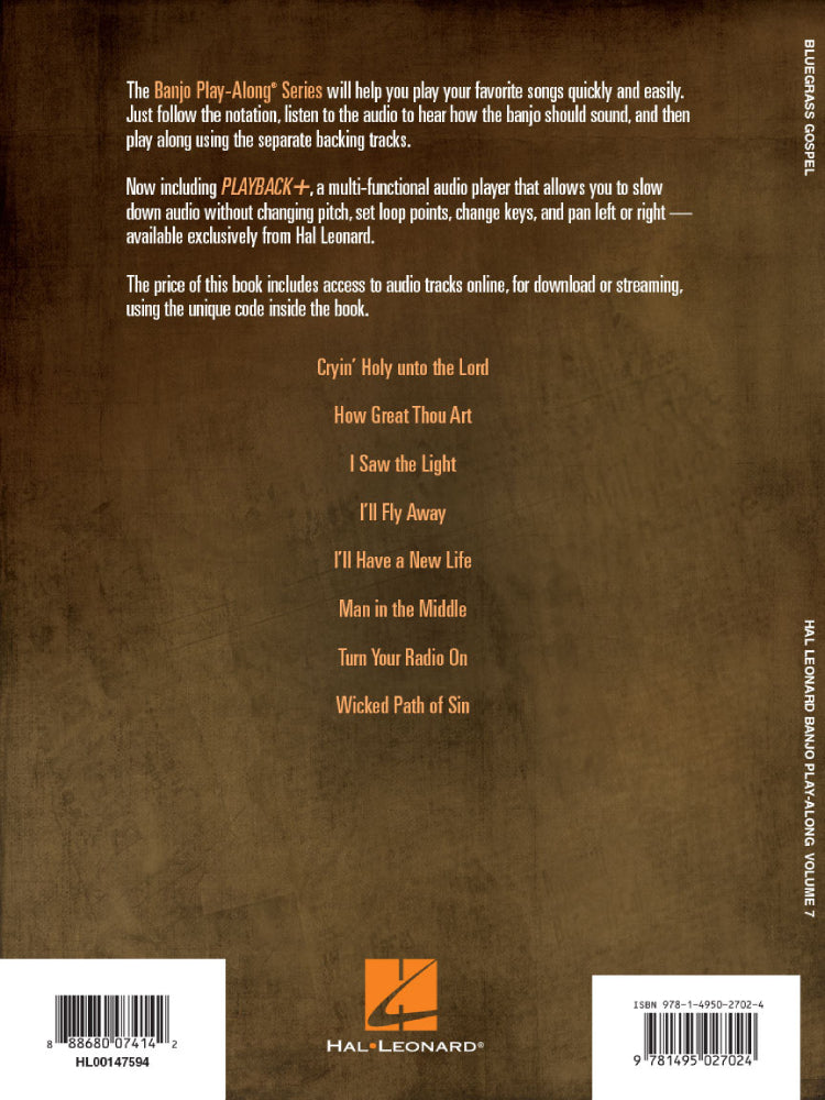 The Banjo Play-Along Series will help you play your favorite songs quickly and easily. Just follow the notation, listen to the audio to hear how the banjo should sound, and then play along using the separate backing tracks. The book includes access to audio tracks online for download or streaming featuring Playback+, a multi-functional audio player that allows you to slow down the audio without changing pitch, set loop points, change keys, and pan left or right. This volume includes: Cryin' Holy unto the Lord • How Great Thou Art • I Saw the Light • I'll Fly Away • I'll Have a New Life • Man in the Middle • Turn Your Radio On • Wicked Path of Sin.