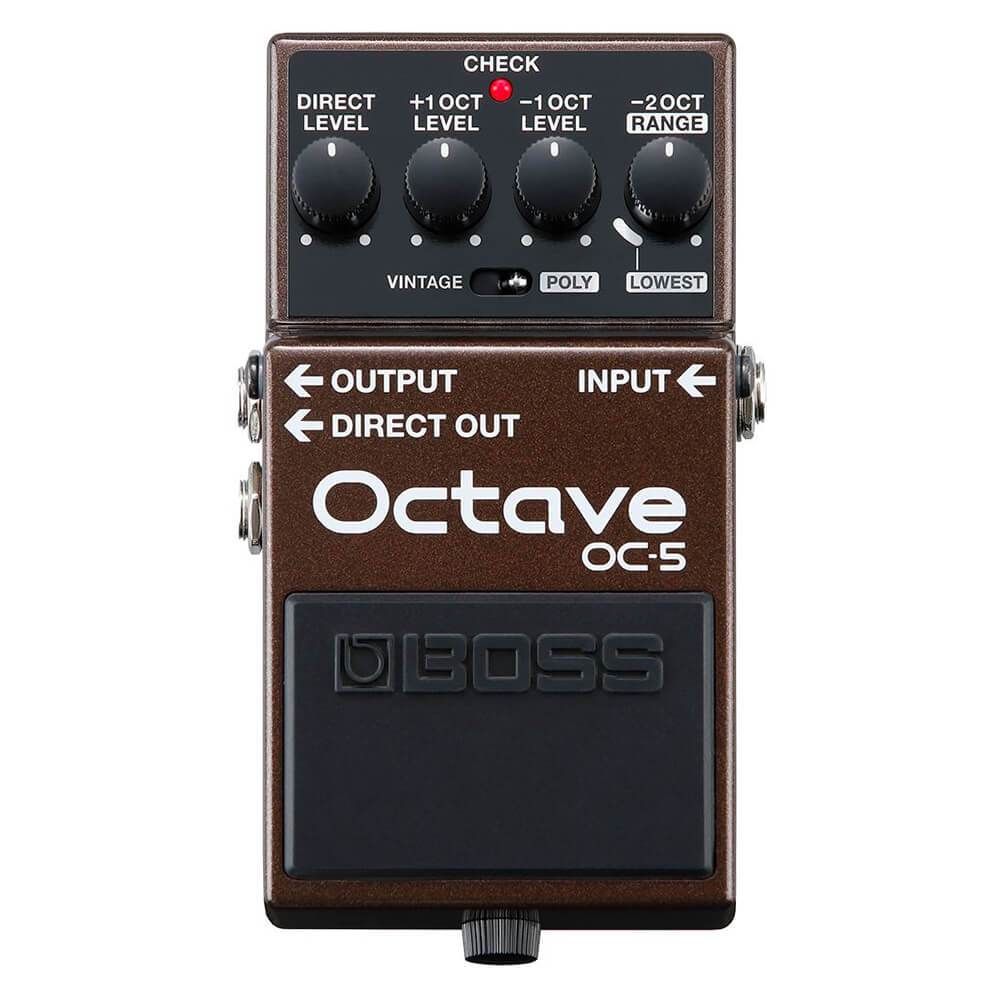 Fusing classic BOSS octave tones with the latest tracking technologies, the BOSS OC-5 sets a new standard in octave pedal performance. Vintage mode provides a spot-on recreation of the legendary mono OC-2 from 1982, while Poly mode offers numerous enhancements for extended-range playing. And with the addition of an octave-up feature, a span of three octaves is now available for creative exploration. From fat, low mono sounds to octave-shifted chords and more, the OC-5 delivers the widest range, finest sound quality, and best playability in any octave stomp to date.