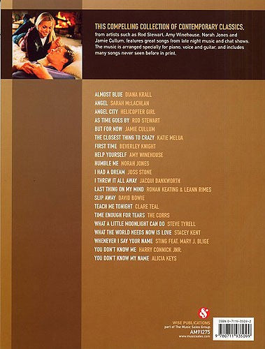 A smooth and timeless collection of laid back Piano grooves by artists including Daina Krall, Katie Melua and Alicia Keys. Give a little romantic sparkle to your evenings, shrug of the pressures of your day, and learn to play the tunes that will help you just to relax and enjoy! The wide variety of songs range from suave sophistication of Harry Connick Jnr to the contemporary silk blues of Joss Stone. All songs arranged for Piano with Voice and Guitar chords.