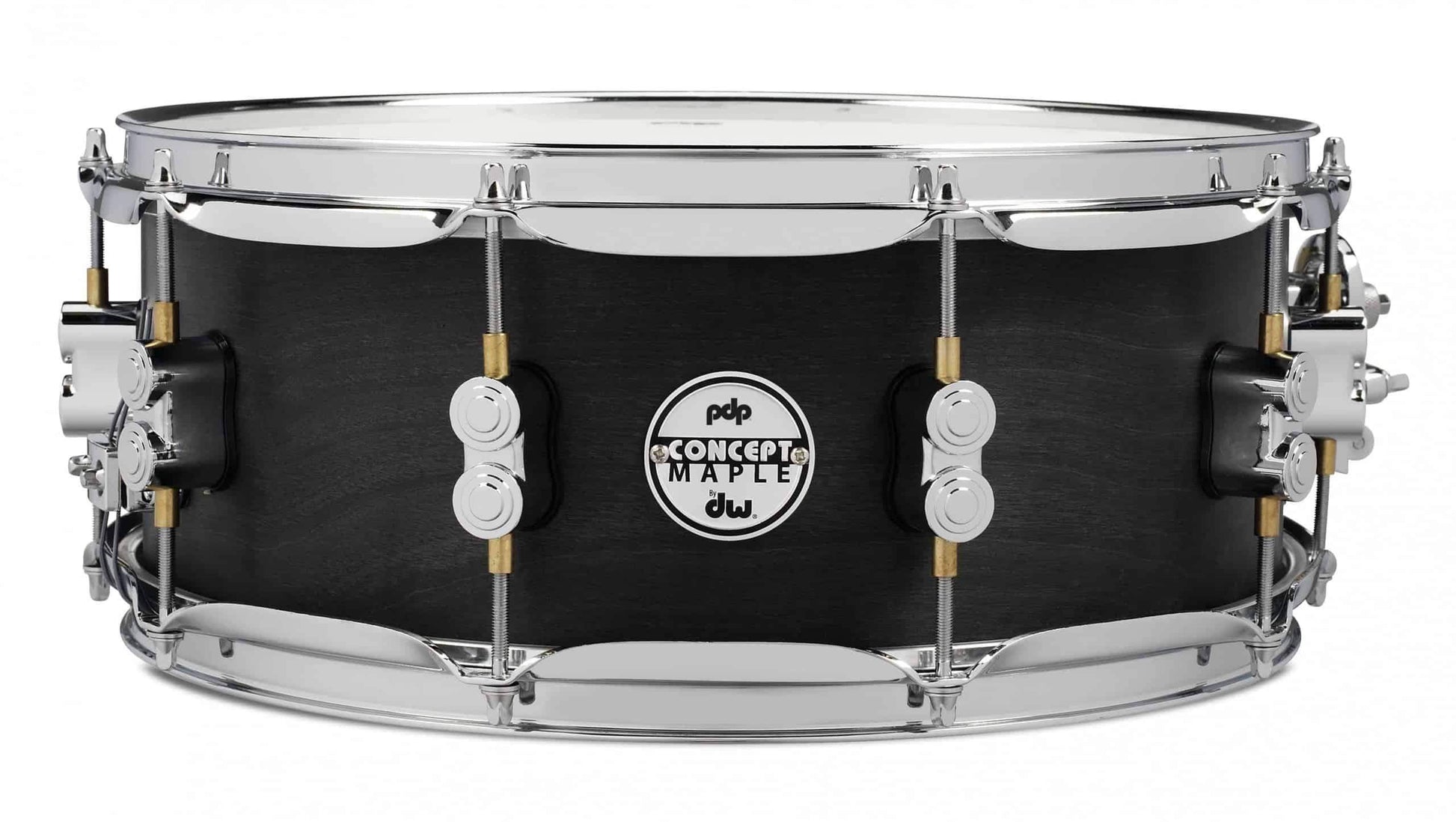 The PDP Concept Series Black Wax Maple Snares offers a dark, smooth, matte finish from a hand-applied, wax-based sealer. This specialty snare features a 10-ply European Maple shell that produces full attack with versatile and warm tone, PDP's dual-turret lugs and DW's MAG throw-off and True Pitch tension rods for precise, stable tuning. World-class drum heads from Remo make these snares ready to play right out of the box.