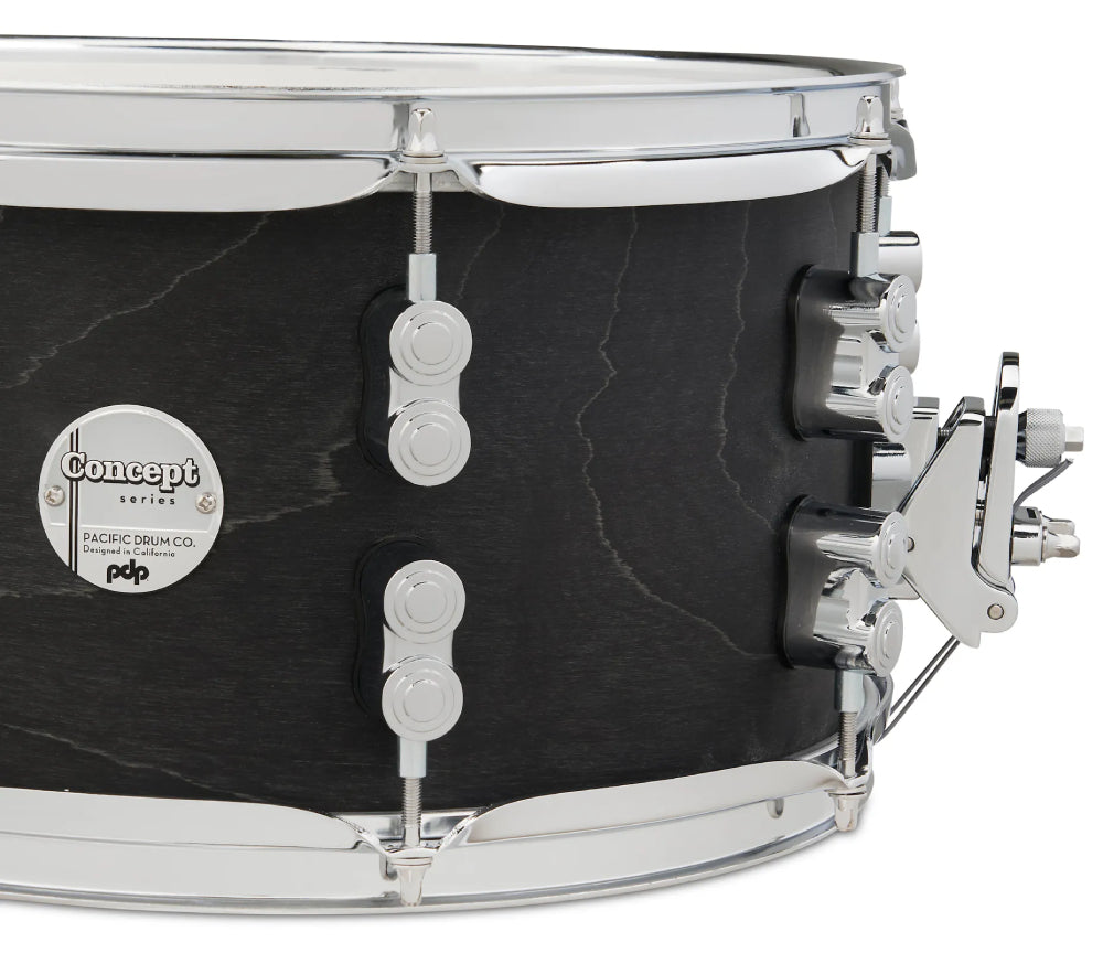 The PDP Concept Series Black Wax Maple Snares offers a dark, smooth, matte finish from a hand-applied, wax-based sealer. This specialty snare features a 10-ply European Maple shell that produces full attack with versatile and warm tone, while the wax sealant shows off the understated beauty of the Maple grain.