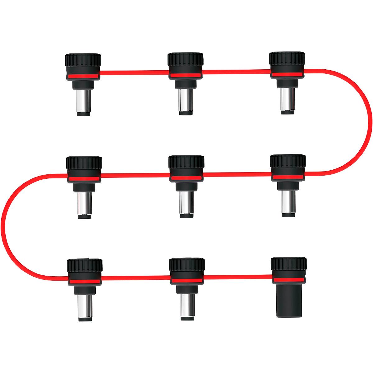 The XPND Adjustable Daisy Chain’s innovative design allows you to customize the placement of each power plug to go exactly where you need it, with the freedom to add, subtract, and move connectors at any time. The self-healing cable ensures durability and long-lasting performance, even with frequent adjustments. Get pro-level board organization without the steep cost of individually isolated power. Use only the connectors you need and never waste a plug because of unique pedal spacing issues. Expand your power with XPND Power Solutions.