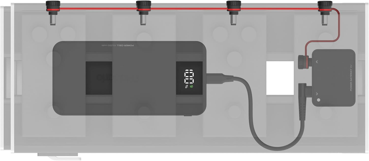 The XPND Pedal Power Battery Kit is an all-in-one pedalboard power solution, on or off the grid. Cut the cord with the rechargeable 10,000mAh Portable Power Cell, capable of powering an average-sized board for 10+ hours, or go on the grid with the USB-C power supply. The kit’s patent-pending Gateway hub combines USB Power Delivery protocol with proprietary noise filtering for ultra-quiet, consistent 9-volt power.