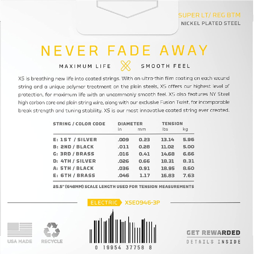 - With a NY Steel core and Fusion Twist technology, XS Nickel offers greater break strength and unmatched tuning stability—staying in tune 131% better than standard electric strings