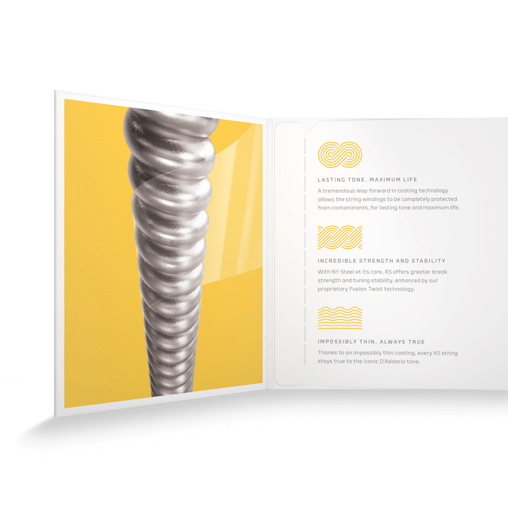 XS Nickel coated electric guitar strings provide the longest life of any D’Addario electric guitar string. Coated with our groundbreaking XS coating, these premium electric strings attain maximum life and a smooth, fast feel without dampening their outstanding tone. Constructed with a NY Steel core, reformulated nickel-plated steel wrap wire, and Fusion Twist technology, XS Nickel strings boast superior strength and tuning stability.