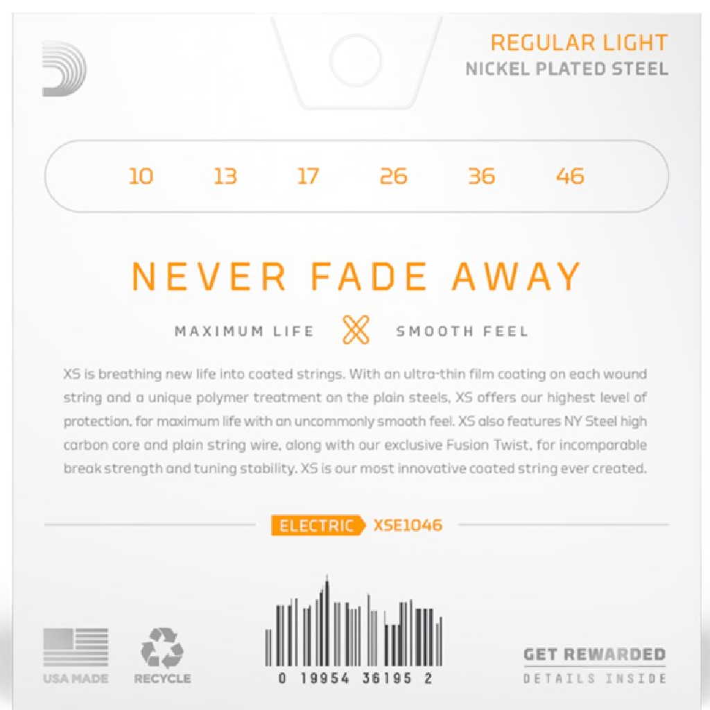 D'Addario XS Regular Light Coated Electric Guitar Strings 10-46 Gauge