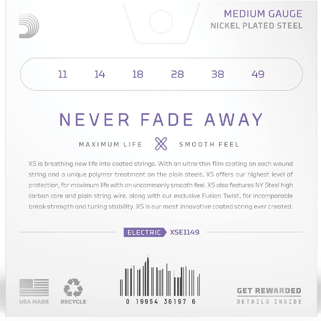 D'Addario XS Medium Coated Electric Guitar Strings 11-49 Gauge