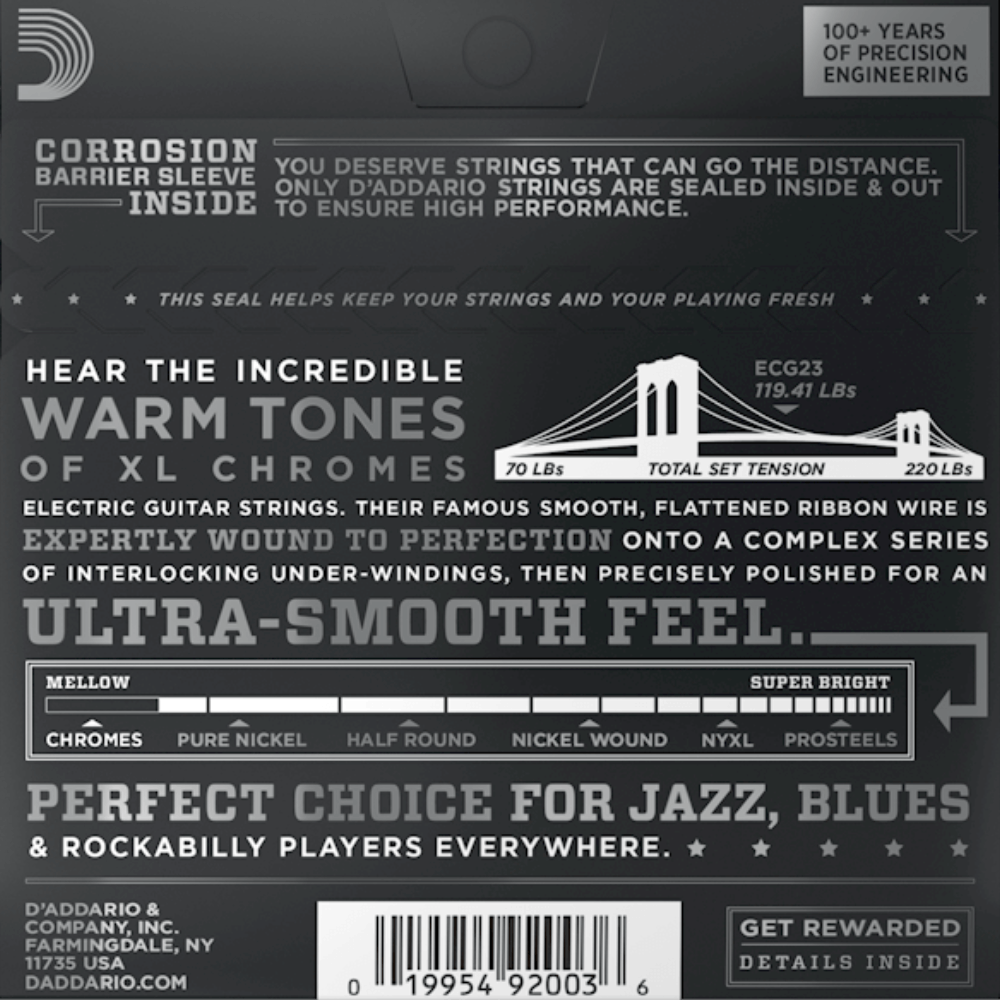 D'Addario ECG23 XL Chromes Flat wound Electric Guitar Strings Extra Light 10-48 Gauge