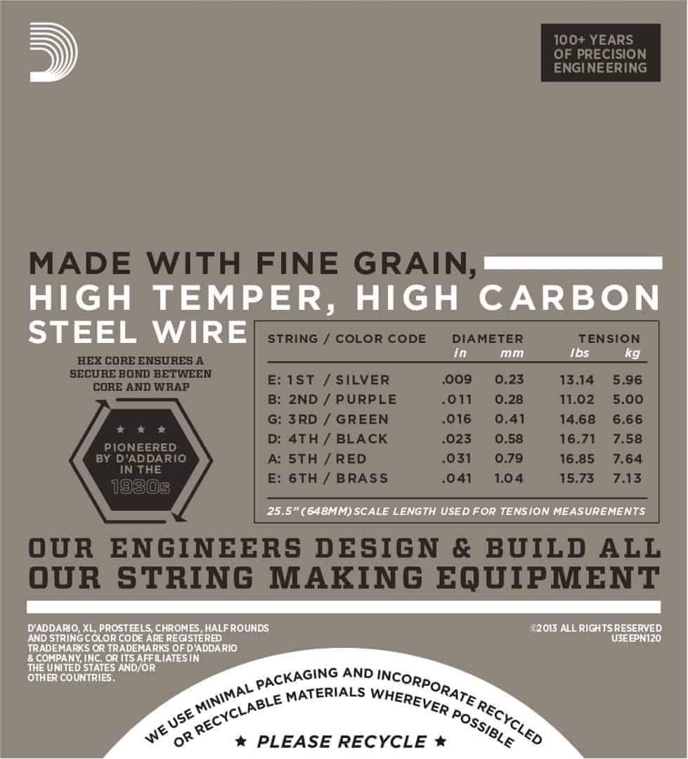 - String Gauges: Plain Steel .009, .011, .016, Nickel Wound .023, .031, .041