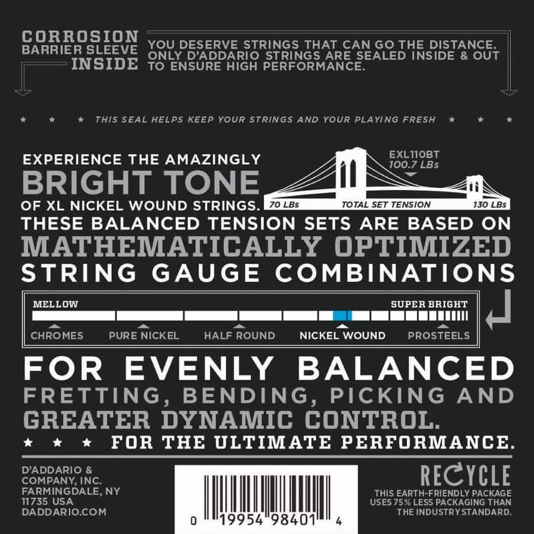 D'Addario EXL110BT Nickel Wound Electric Guitar Strings Regular Light 10-46 Gauge