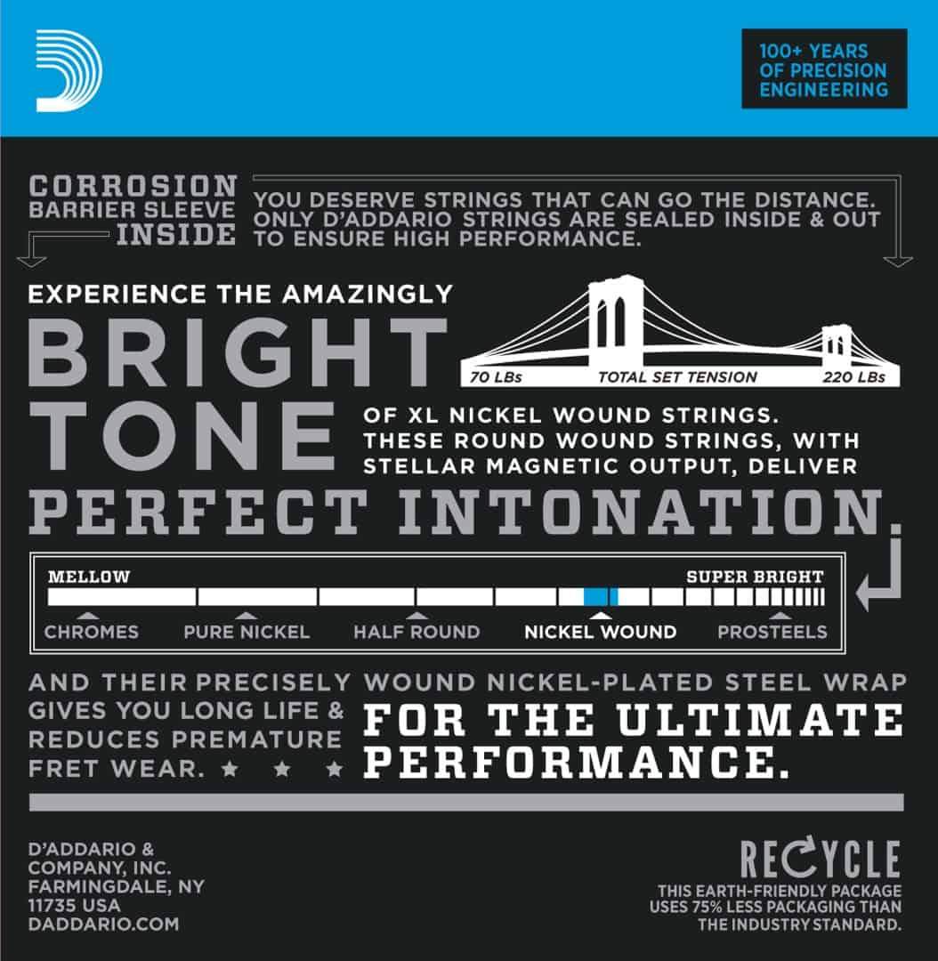 - Round wound with nickelplated steel for distinctive bright tone