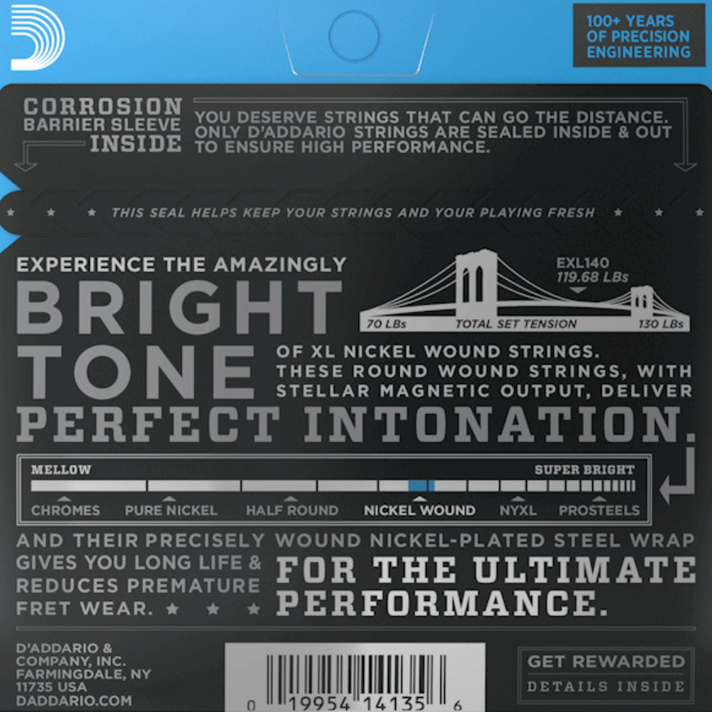 D'Addario EXL140 Nickel Wound Electric Guitar Strings Light Top Heavy Bottom 10-52 Gauge