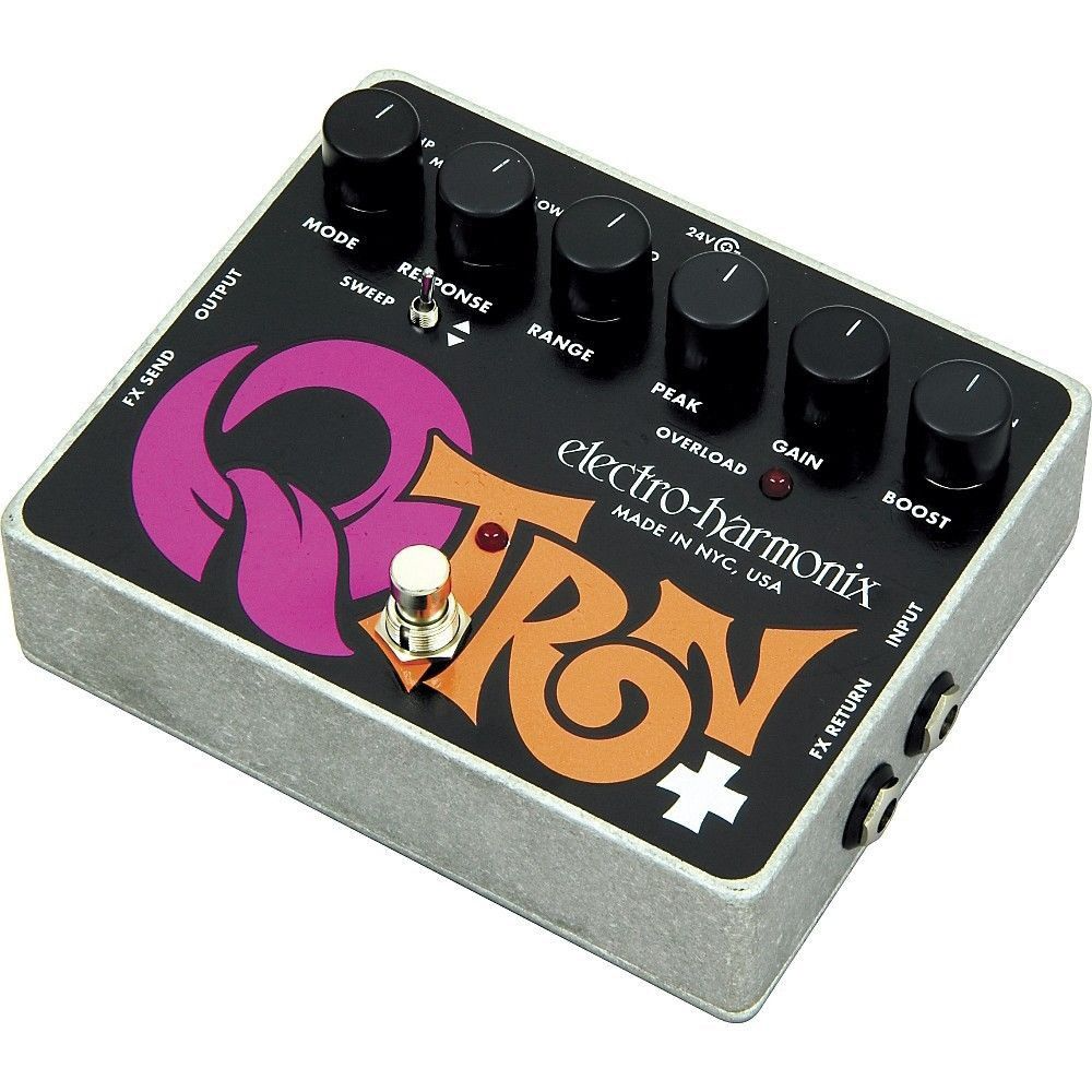 Same design as the original EHX Q-Tron but with extremely useful Effects Loop and an Attack Response Switch. The Effects Loop gives the musician the ability to place an additional effect, or chain of effects between the EHX Q-Tron Plus’s preamp and filter section without changing the envelope drive. This is particularly important with most distortion devices, as most all do not have much of an amplitude envelope.