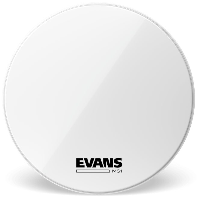 EVANS MS1 White Marching bass drumheads offer a traditional single-ply, 10mil film without muffling, providing the widest range of damping options. The MS1 series is very durable and projects warm, musical tones both indoors and out.