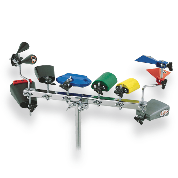 The LP Everything Rack allows you to mount multiple percussion instruments and keep them all within easy reach. The rack includes both straight and z-rods for flexible set-ups and mounts to stands between 3/8" and 1-1/8" in diameter, using a reversible V bracket.