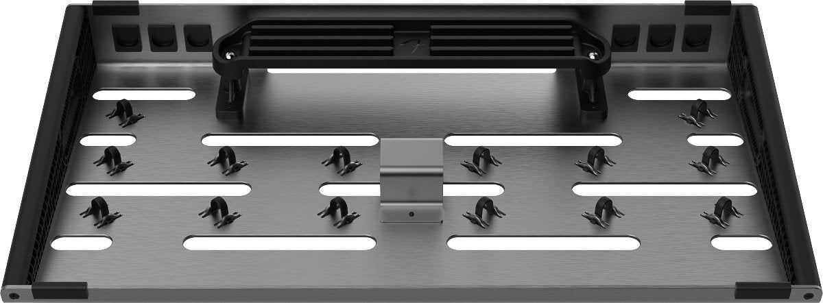 Players in search of a road-ready pedalboard will find much to appreciate about the Fender Professional Pedalboard. This board's low-profile, precision-machined, anodized-aluminum chassis is ergonomic, lightweight, and built to withstand your adrenaline-fueled stomps. The Professional Pedalboard includes common-sense cable routing and management even with the most crowded of stompbox configurations.