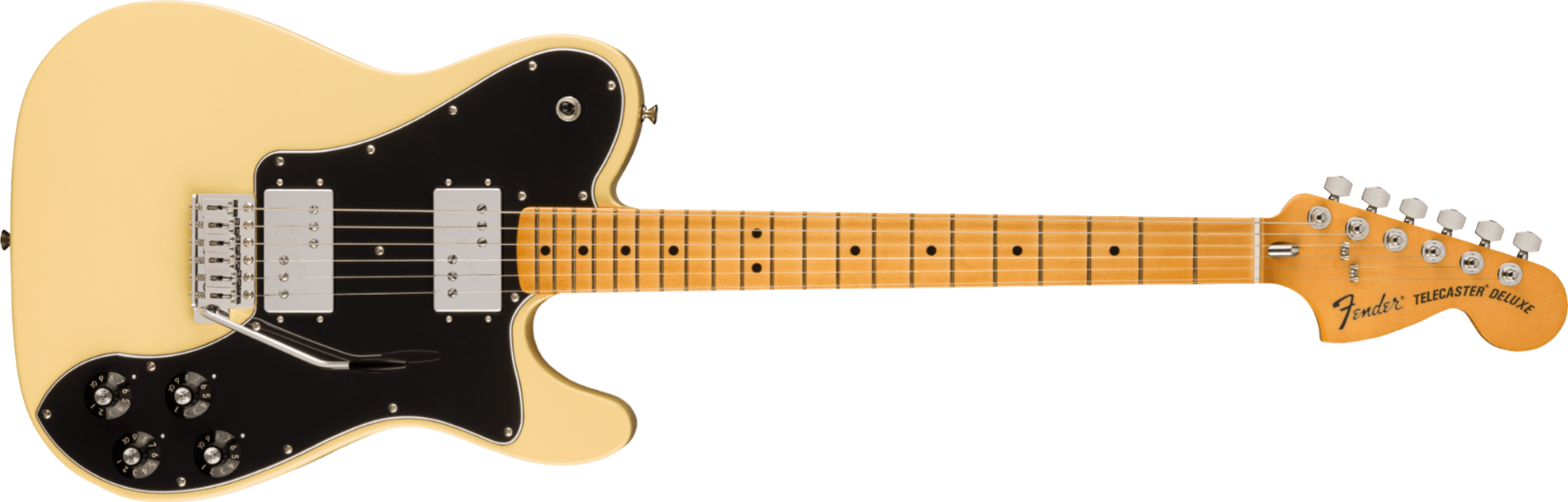 Revive the timeless sound of the '70s with the Vintera® II '70s Telecaster® Deluxe with Tremolo and experience the iconic looks, inspiring feel, and incomparable tone that only a Fender can deliver. The Vintera® II '70s Telecaster® Deluxe with Tremolo features an alder body and a maple neck for classic Fender tone that's full of punch and clarity.