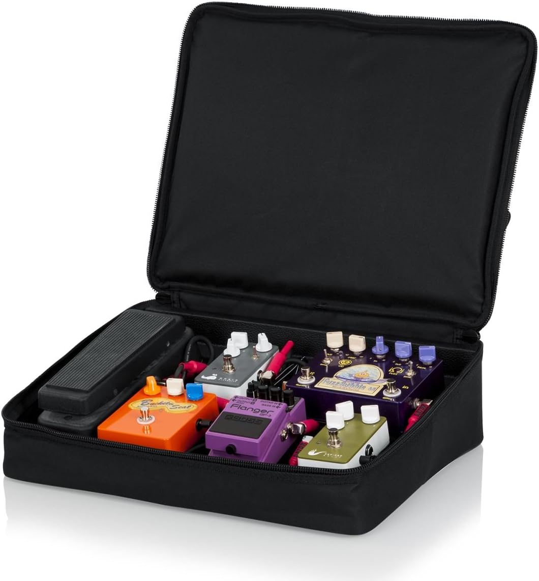 The Gator Cases GPT-BLACK guitar pedal board mixes affordability, durability, and style all in one innovative product. The GPT-BLACK pedal board is made of lightweight plywood covered in rugged Tolex material. The GPT-BLACK has a usable surface area that measures 16.5 X 12. The GPT-BLACK guitar pedal board also includes mounting holes under the board for most multi-output power supplies.
