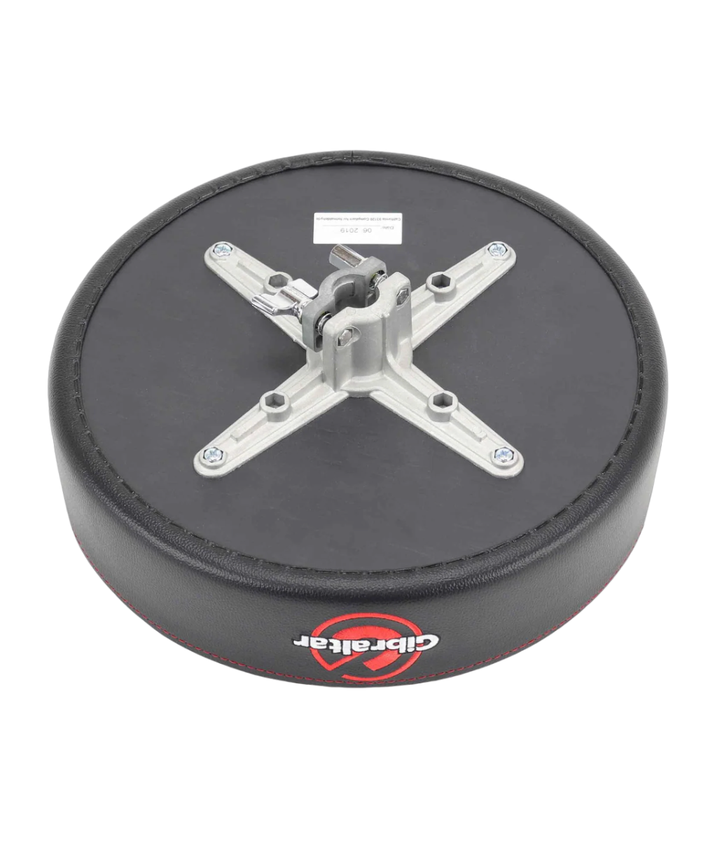 Gibraltar’s “go to” model 9608 is a heavy-duty double-braced throne built to withstand the roughest treatment while providing maximum comfort to the player. Featuring a 13” diameter round 3.5” thick round memory foam seat outfitted in black PVC leather on top and side panels with stitched color logo. The 9608 double-braced tripod base extends from the lowest setting of 20” to 26” in height.