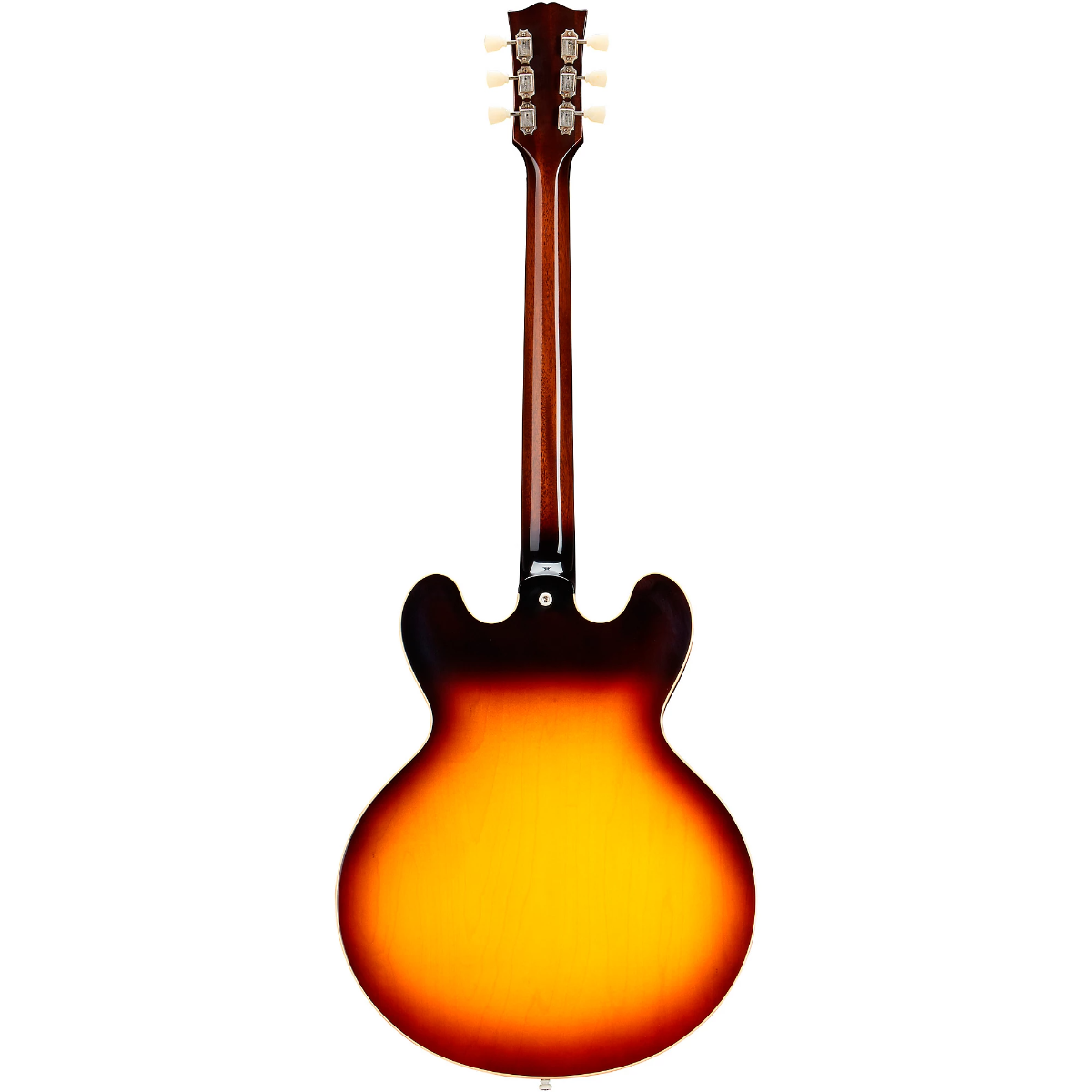 The Historic Reissue ES-335 is back and better than ever thanks to a year of studying, scanning, and listening to original examples. The expert craftspeople at Gibson Custom Shop have rendered every contour, profile, inlay and color of the priceless vintage models in magnificent detail. The result is a playing and ownership experience that will keep you coming back for more. The 1959 Reissue models feature rounded cutaways, Medium C-shape neck profiles scanned from originals, dot inlays and vintage-replica parts.