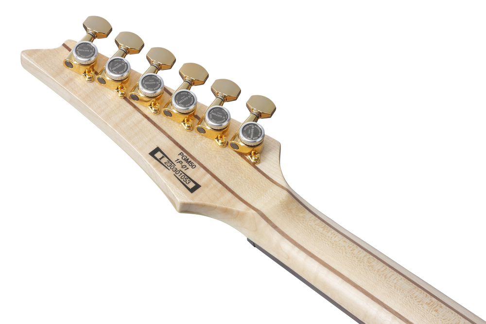 The Ibanez PGM50 BK Paul Gilbert Signature Electric Guitar features an American Basswood which body delivers a natural and flat tone. All of this is captured with DiMarzio® Air Classic™ pickups combining vintage voicing with modern technology which delivers an incredible touch-sensitive sound. DiMarzio® PGM single-coil middle pickup provides a perfect mix of vintage and modern sounds.The 5pc Maple/Walnut neck provides tonal clarity and superior attack while the Rosewood fretboard provides a well-balanced solid tone with a focused mid range.Product Features: