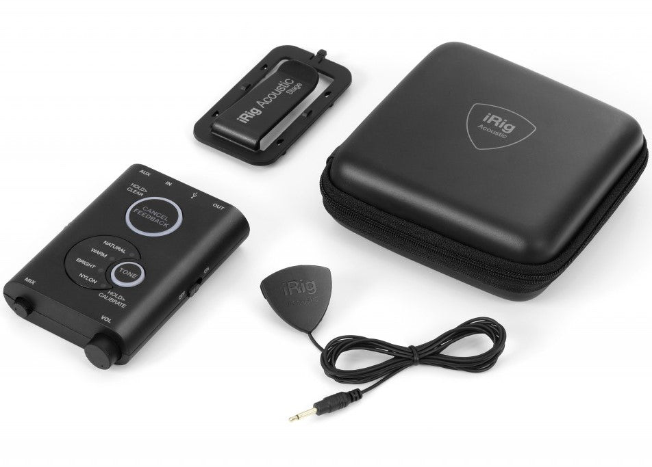 iRig Acoustic Stage is the new hi-tech solution for accurately reproducing the full sound of acoustic guitars and other instruments with studio-quality sound live on stage and in the studio. The combination of its advanced MEMS microphone and hi-quality preamp and DSP processing unit provides for the first time ever a break-through solution that offers hi-quality natural sound, advanced features, ease of installation and a convenience never seen before.