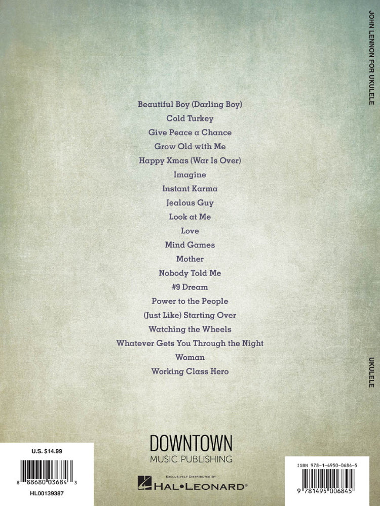 A great collection of 20 Lennon favorites arranged specifically for uke,including: Beautiful Boy (Darling Boy) • Give Peace a Chance &bull ; Grow Old with Me • Happy Xmas (War Is Over) • Imagine •Instant Karma • Mind Games • Nobody Told Me • (Just Like ) Starting Over • Watching the Wheels • Woman • and more.