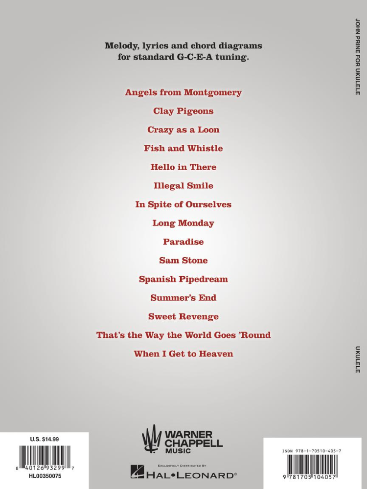 15 of the best from the late country/folk singer-songwriter in standard G-C-E-A arrangements for ukulele. Inlcudes: Angels from Montgomery • Clay Pigeons • Crazy As a Loon • Fish and Whistle • Hello in There • Illegal Smile • In Spite of Ourselves • Long Monday • Paradise • Sam Stone • Spanish Pipedream • Summer's End • Sweet Revenge • That's the Way the World Goes 'Round • When I Get to Heaven.