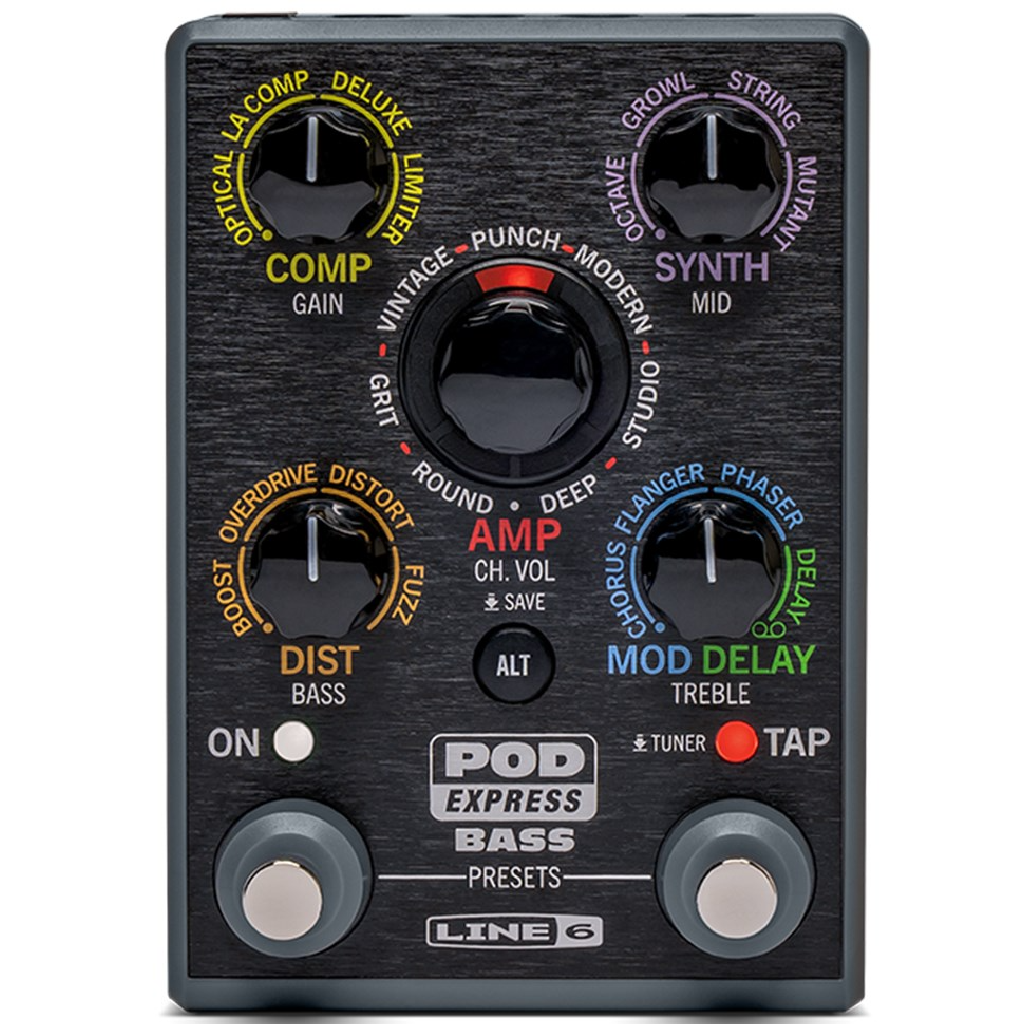 The ultra-portable POD Express Bass amp and effects processor lets bassists take their tones wherever they go, while models derived from our HX processors ensure exceptional sound. POD Express Bass is an ultra-portable bass amp and effects processor that enables bassists to take their tones wherever they choose. Simple controls make it easy to use, while models derived from the HX family of processors ensure exceptional sound quality and authentic feel.