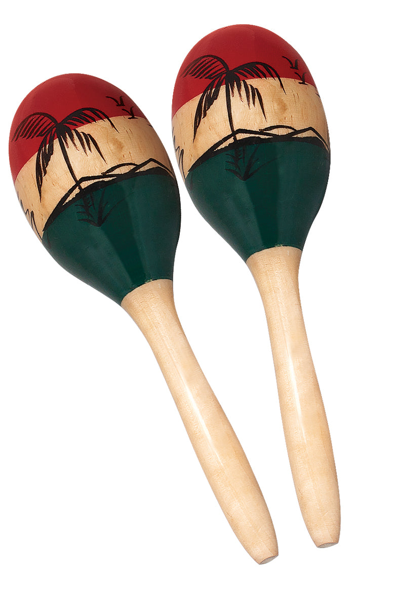 MANO PERCUSSION - Wooden oval shape maracas. "Tropical" hand painted design. 10" long. Pair.