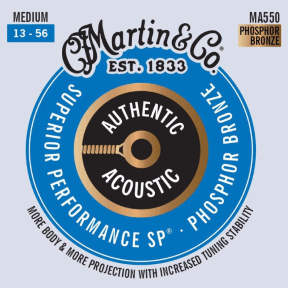 Martin Strings MA550 Authentic Acoustic SP 92/8 Phosphor Bronze Guitar String 13-56 Gauges