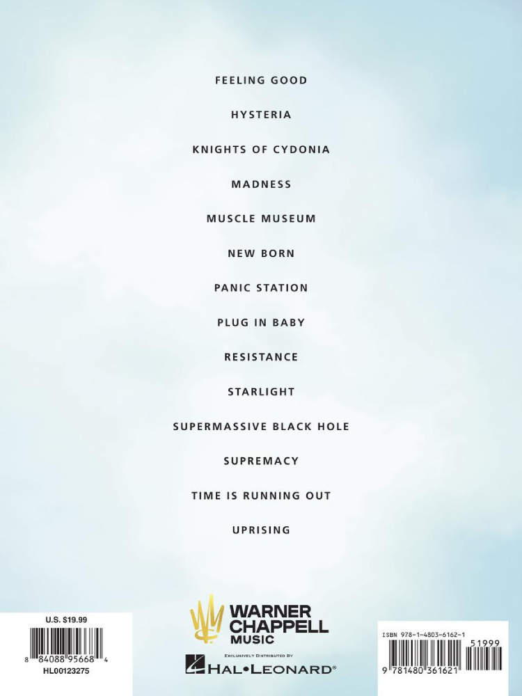 Celebrate the stylings of Chris Wolstenholme, bassist for this popular British alt-rock band with this collection of bass transcriptions with tab. Includes: Feeling Good • Hysteria • Knights of Cydonia • Madness • Muscle Museum • New Born • Panic Station • Plug in Baby • Resistance • Starlight • Supermassive Black Hole • Supremacy • Time Is Running Out • Uprising.