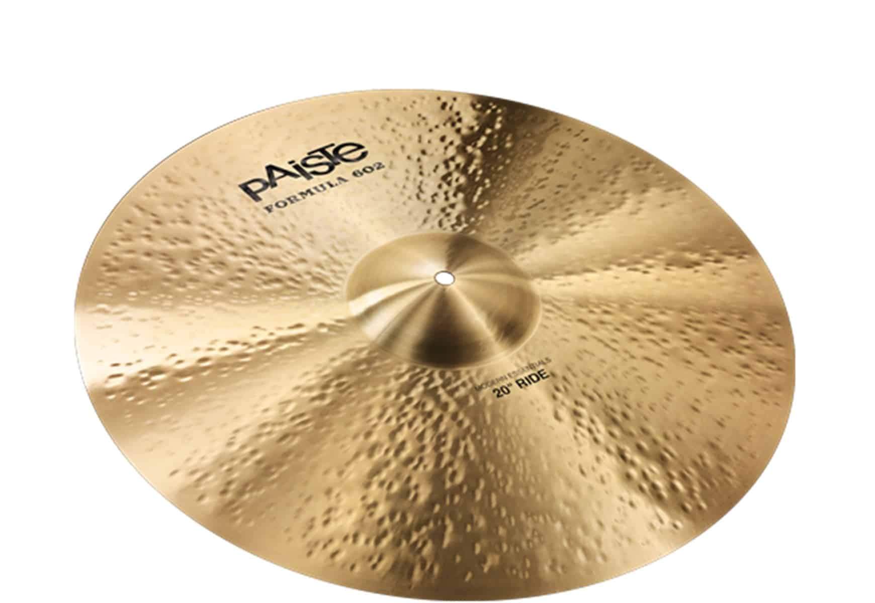 The 20" Paiste Forumla 602 Modern Essentials Ride Cymbals is full, rich, warm, strong, deep, and silvery. Wide range, complex mix. Responsive and even feel. Warm sparkling stick sound over a wide, deep wash. Fairly quick, hefty crash sound. Extremely dynamic and lively Ride cymbal, suitable for many musical styles.