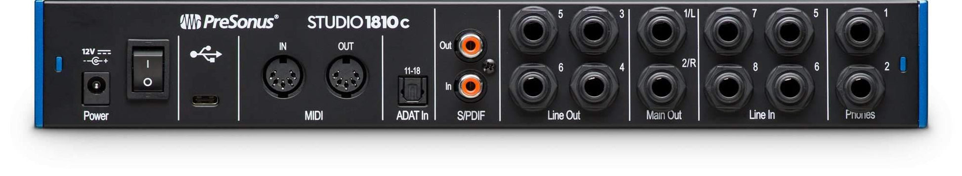 You don't need to sacrifice mobility for connectivity. Take amazing studio-quality sound and flexible input options on the road with the PreSonus® Studio 1810c audio interface. With four of PreSonus' lauded XMAX analog mic preamps, high-quality instrument preamps, balanced line-level inputs, and an ADAT input to add eight more channels whenever you need them, the Studio 1810c is a compact recording powerhouse housed in a rugged, roadworthy chassis.