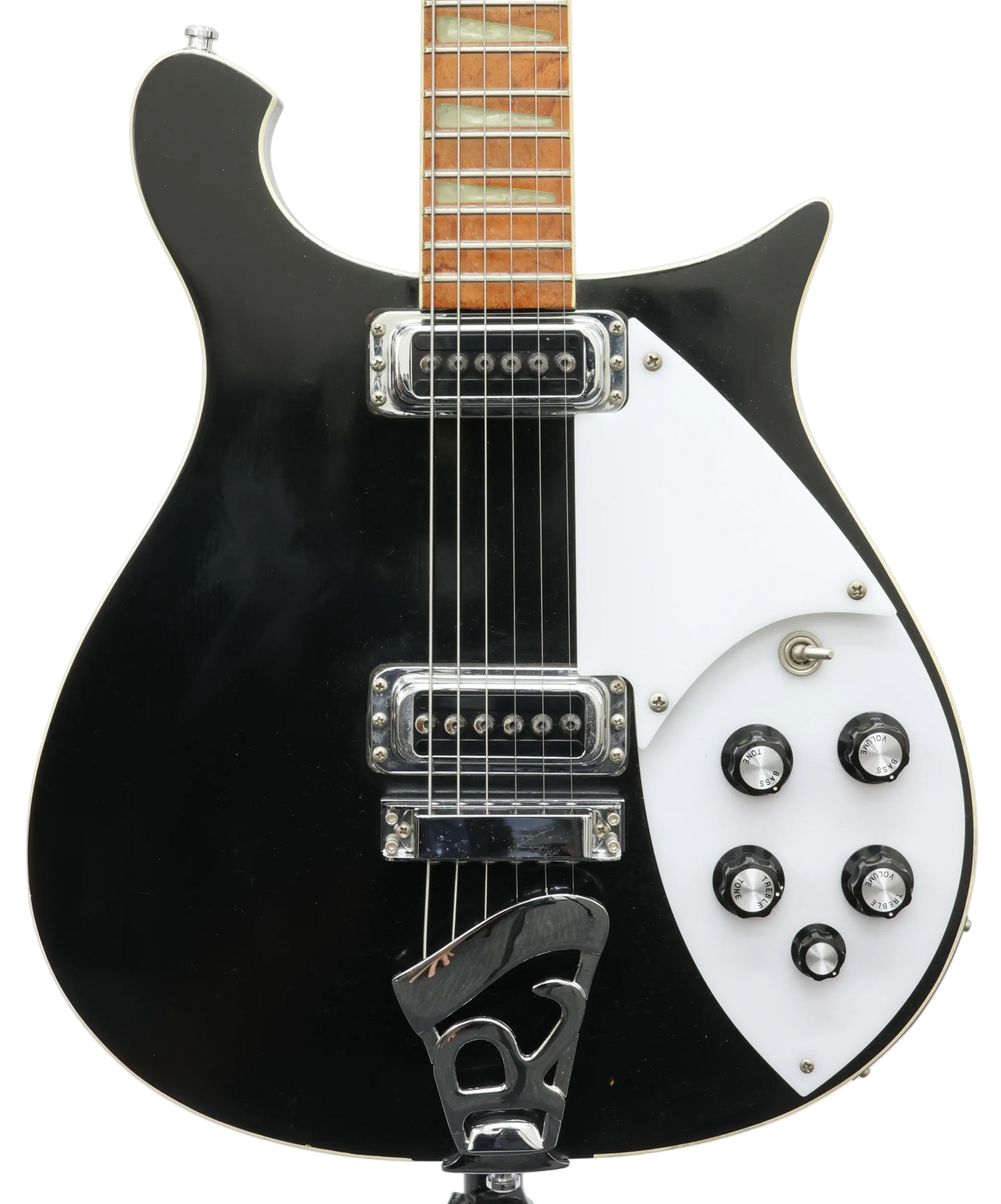 Second Hand Rickenbacker Model 620 in Jetglo. It features the iconic 'Cresting Wave' maple body from 1950s designs, a bound maple neck-thru-body for sustain, rosewood fretboard with triangular inlays, and hi-gain single-coil pickups for classic jangly tone plus stereo output.