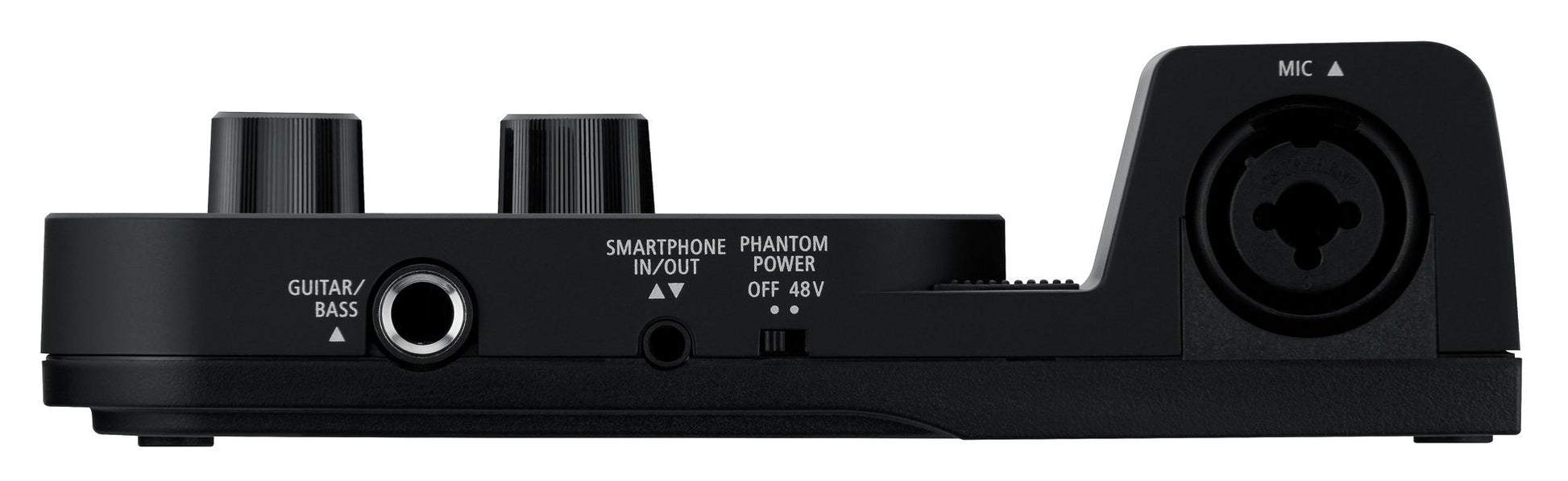 - Combo jack supports standard mics with XLR or ¼-inch plugs; 48 V phantom power available via XLR