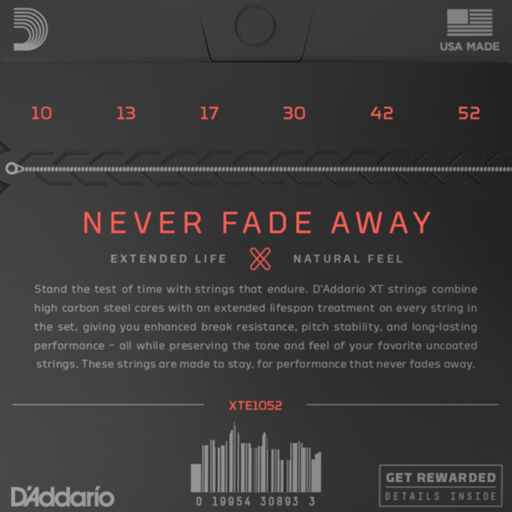 D'Addario XTE1052 XT Nickel Plated Electric Guitar Strings Light Top Heavy Bottom .010-.052 Gauge